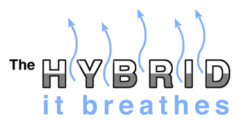 Cooler and water-resistant, the fabric used for the HYBRID is similar to what is commonly used on dress raincoats. Though water beads up on the surface of this tightly woven material, technically it does not qualify as fully waterproof.